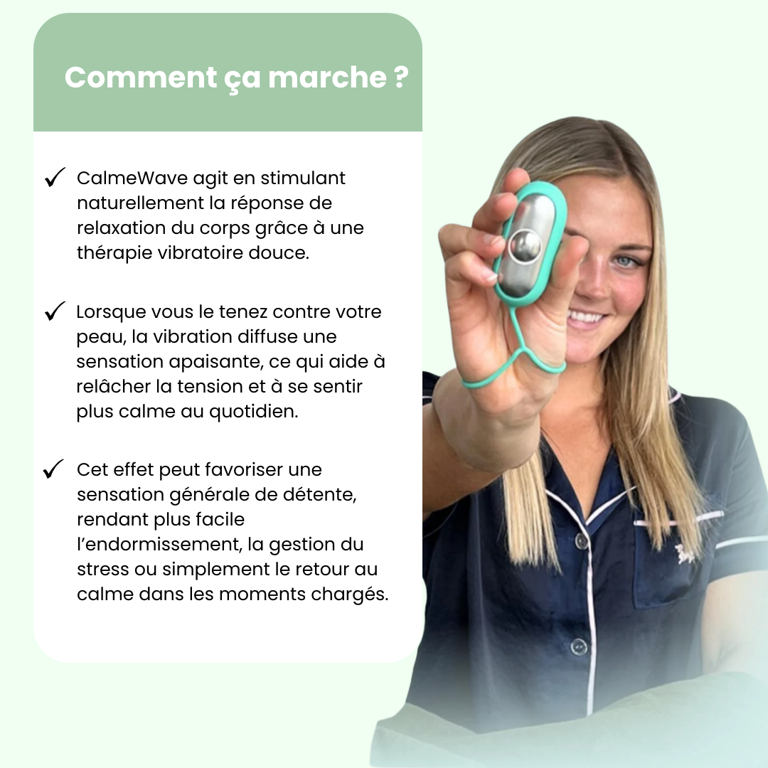 CalmeWave peut aider en cas de stress, de surcharge mentale, de nervosité, de difficultés à “lâcher prise” ou de difficultés à se détendre le soir. Il ne remplace pas un avis médical, mais peut devenir un soutien doux dans votre rituel de bien-être au quotidien.