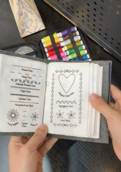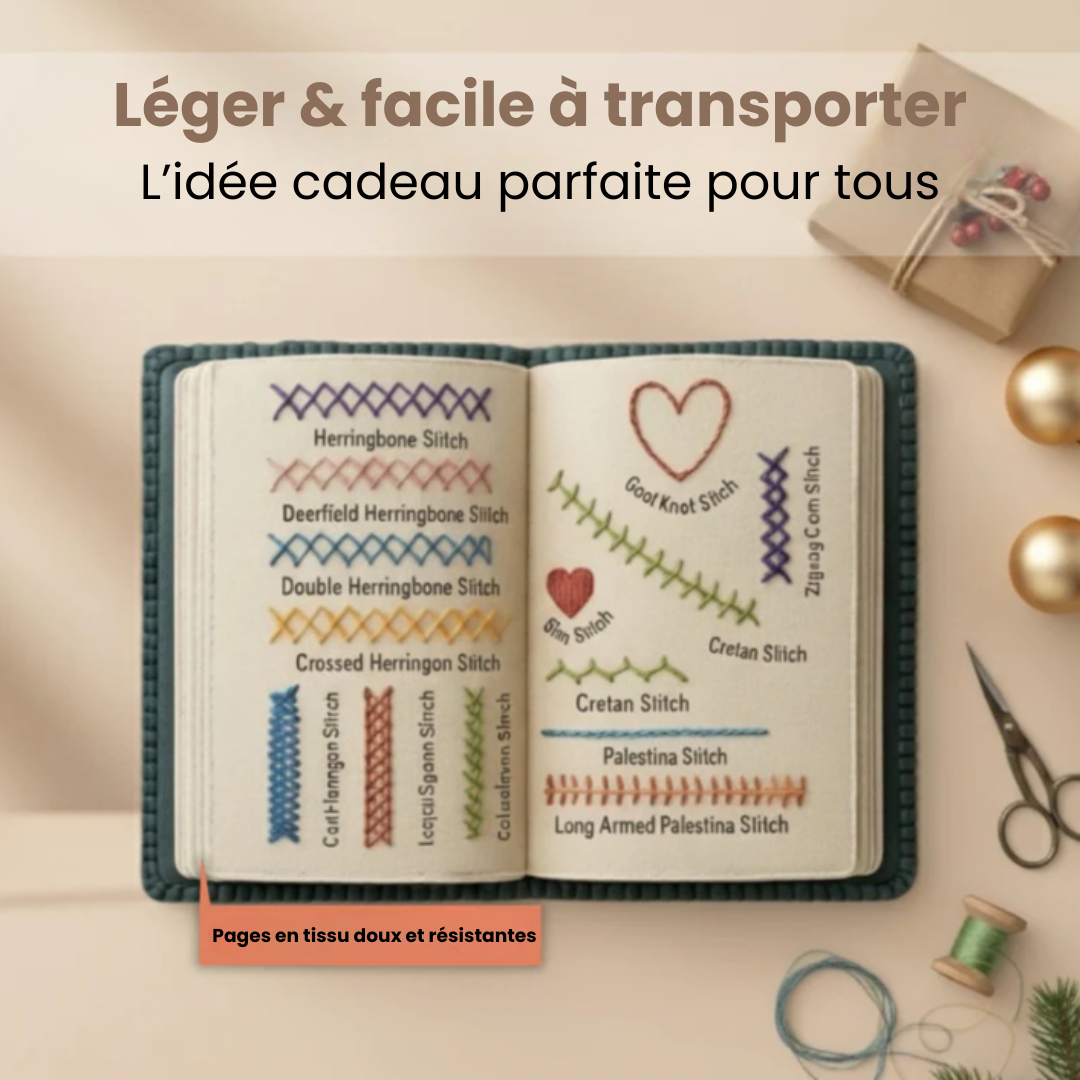 Chaque page est conçue en tissu doux et résistant, offrant un support agréable pour broder et se concentrer sur le rythme apaisant de l’aiguille et du fil.